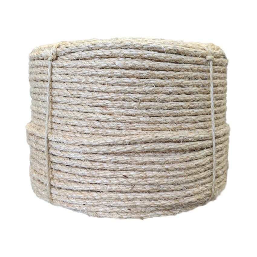 £247.99 inc. VATRope Material : Sisal (100% natural)Rope Diameter : 18mmLength : 220m coilWeight : 48kgBreak Load : 2203kgBreak Load Certified? : NoSafe Working Load : 315kgConstruction : Twisted 3 strandColour : SandyStretch : Low elasticityAbrasion Resistance : PoorElongation at Breakpoint : LowUV Resistance : GoodBiodegradable : YesMelt / Char Point : 165CRot Resistant : NoSwells When Wet : YesStrength: Wet vs Dry : Decrease 15%Acid Resistance : PoorAlkali Resistance : GoodFloats? : NoHandling : Hard & fibrousOdour : Faint grassy smellTreated With : Vegetable oilKnot Retention : GoodEase of Splicing : Very easyDensity : 1.35Manufactured In : BrazilISO Certified? : YesISO Manufacturing Standard : EN ISO 1181:2004