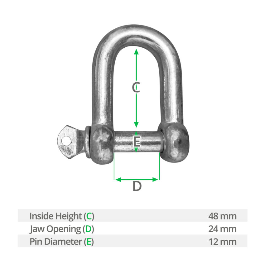 12mm Electro Galvanised Dee Shackle with Screw Pin
