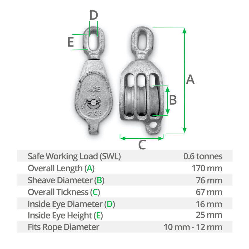 3″ Malleable Treble Wheel Pulley Block (Swivel Oval Eye)