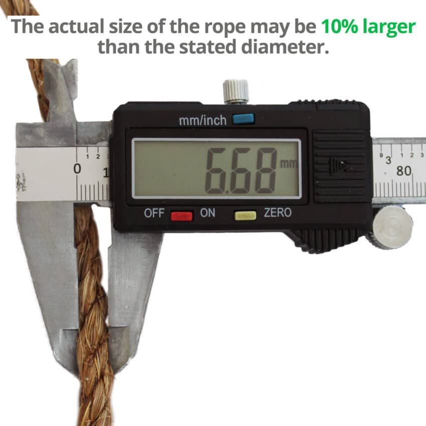 £40.99 inc. VATRope Material : Manila (100% natural)Rope Diameter : 6mmLength : 220m coilWeight : 7kgBreak Load : 295kgBreak Load Certified? : YesSafe Working Load : 42kgConstruction : Twisted 3 strandColour : BrownStretch : Low elasticityAbrasion Resistance : PoorElongation at Breakpoint : LowUV Resistance : GoodBiodegradable : YesMelt / Char Point : 177CRot Resistant : NoSwells When Wet : YesStrength: Wet vs Dry : Increase 10%Acid Resistance : PoorAlkali Resistance : GoodFloats? : NoHandling : Hard & fibrousOdour : Faint earthyTreated With : Mineral oilKnot Retention : Very goodEase of Splicing : Very goodDensity : 1.38Manufactured In : PhilippinesISO Certified? : YesISO Manufacturing Standard : EN ISO 1181:2004£31.99 inc. VATRope Material : Sisal (100% natural)Rope Diameter : 6mmLength : 220m coilWeight : 6kgBreak Load : 263kgBreak Load Certified? : NoSafe Working Load : 38kgConstruction : Twisted 3 strandColour : SandyStretch : Low elasticityAbrasion Resistance : PoorElongation at Breakpoint : LowUV Resistance : GoodBiodegradable : YesMelt / Char Point : 165CRot Resistant : NoSwells When Wet : YesStrength: Wet vs Dry : Decrease 15%Acid Resistance : PoorAlkali Resistance : GoodFloats? : NoHandling : Hard & fibrousOdour : Faint grassy smellTreated With : Vegetable oilKnot Retention : GoodEase of Splicing : Very easyDensity : 1.35Manufactured In : BrazilISO Certified? : YesISO Manufacturing Standard : EN ISO 1181:2004£2.58 inc. VATRope Material : Manila (100% natural)Rope Diameter : 20mmLength : Sold by metreWeight : 0.27kgBreak Load : 3039kgBreak Load Certified? : YesSafe Working Load : 434kgConstruction : Twisted 3 strandColour : BrownStretch : Low elasticityAbrasion Resistance : PoorElongation at Breakpoint : LowUV Resistance : GoodBiodegradable : YesMelt / Char Point : 177CRot Resistant : NoSwells When Wet : YesStrength: Wet vs Dry : Increase 10%Acid Resistance : PoorAlkali Resistance : GoodFloats? : NoHandling : Hard & fibrousOdour : Faint earthyTreated With : Mineral oilKnot Retention : Very goodEase of Splicing : Very goodDensity : 1.38Manufactured In : PhilippinesISO Certified? : YesISO Manufacturing Standard : EN ISO 1181:2004£2.09 inc. VATRope Material : Manila (100% natural)Rope Diameter : 18mmLength : Sold by metreWeight : 0.21kgBreak Load : 2478kgBreak Load Certified? : YesSafe Working Load : 354kgConstruction : Twisted 3 strandColour : BrownStretch : Low elasticityAbrasion Resistance : PoorElongation at Breakpoint : LowUV Resistance : GoodBiodegradable : YesMelt / Char Point : 177CRot Resistant : NoSwells When Wet : YesStrength: Wet vs Dry : Increase 10%Acid Resistance : PoorAlkali Resistance : GoodFloats? : NoHandling : Hard & fibrousOdour : Faint earthyTreated With : Mineral oilKnot Retention : Very goodEase of Splicing : Very goodDensity : 1.38Manufactured In : PhilippinesISO Certified? : YesISO Manufacturing Standard : EN ISO 1181:2004