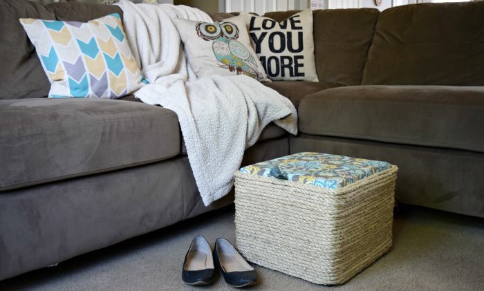 Amanda from Dwelling in Happiness made this project as part of The Home Depot Gift Challenge, with the objective of repurposing a simple item from Home Depot. She wrapped some sisal rope around a milk crate in order to create this beautiful ottoman – and the results are indeed stunning!